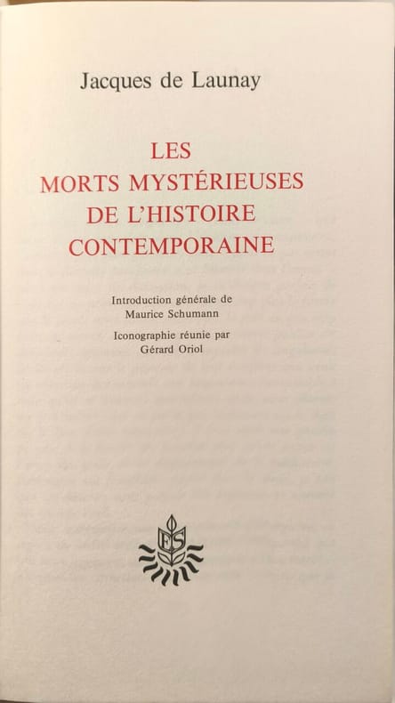 Editions edito-service SA 1973 233 pages in8. 1973. reliure editeur. 233 pages. Ce livre de Jacques de Launay examine les circonstances mystérieuses entourant la mort de 42 grandes personnalités contemporaines entre 1925 et 1970 avec une concentration sur le dernier quart de siècle. L'auteur se focalise sur onze cas emblématiques principalement des chefs d'État en Amérique en menant des enquêtes de terrain minutieuses et en s'appuyant sur des documents officiels pour tenter de répondre à des questions longtemps sans réponse
