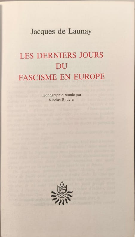 État : Très bon état - Année : 1968 - Format : in 8° - Pages : 192pp - Editeur : Dargaud S.A. Editeur - Lieu d'édition : Paris - Type : Broché - Divers : Légers plis de lecture au dos. Intérieur parfait. - Collection : Histoire vérité - Commander rapidement : https://www.bons-livres.fr/livre/jacques-de-launay/5730-les-derniers-jours-du-fascisme-en-europe?lrb