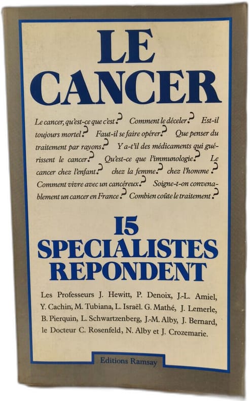 Ramsay 1978 259 pages 21x13x2cm. 1978. Broché. 259 pages. Ouvrage de 1978 présentant une série d'entretiens menés par Yves Roger avec quinze spécialistes du cancer offrant des réponses et des éclairages sur cette maladie