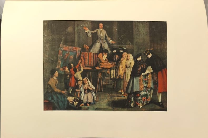 Officine Grafiche Ricordi Milano 1962 non paginé pages in4. 1962. pleine toile éditeur. non paginé pages. Ouvrage de référence sur la peinture vénitienne du XVIIIe siècle publié en 1962 par les Officine Grafiche Ricordi de Milan. Le livre contient environ 63 pages non paginées et présente 12 planches hors-texte de reproductions en couleurs sur soie offrant une sélection d'œuvres représentatives de cette période artistique