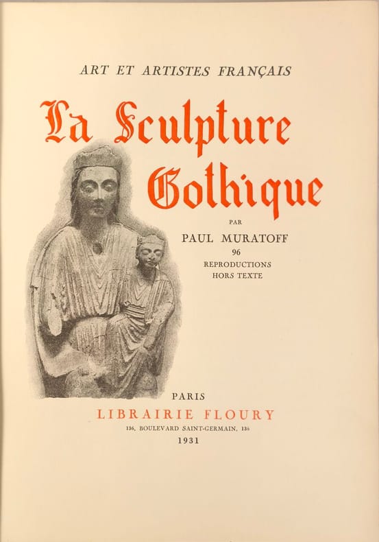 Librairie Floury 1931 175 pages IN4. 1931. reliure éditeur demi basane dos à nerfs. 175 pages. Ouvrage de référence de Paul Muratoff publié en 1931 sur la sculpture gothique française présentant une étude historique avec 96 planches de reproductions en noir et blanc. Le livre couvre l'évolution de la sculpture depuis les ateliers romans jusqu'à la Renaissance dans le cadre de la collection 'Art et artistes français'
