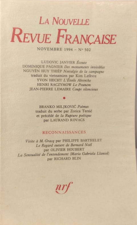 Nrf 1994 127 pages in8. 1994. broché. 127 pages.
