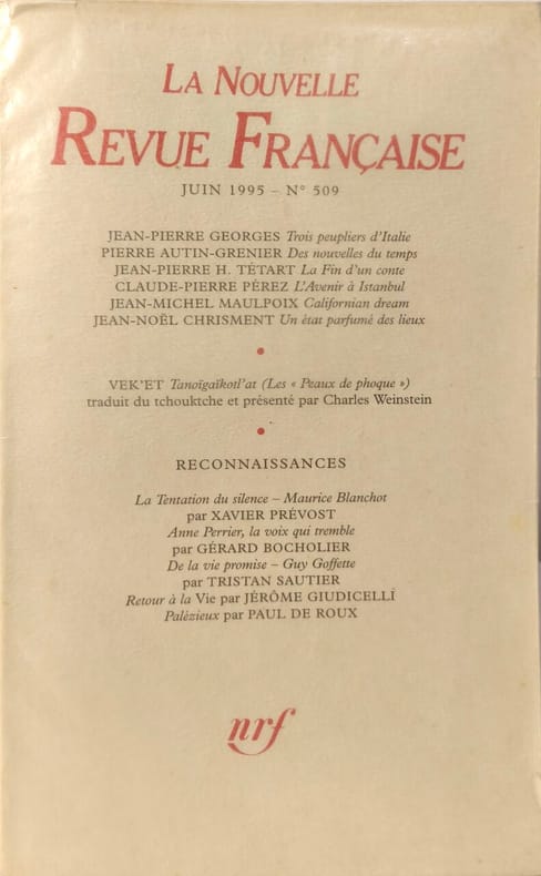 Nrf 1995 156 pages in8. 1995. broché. 156 pages.
