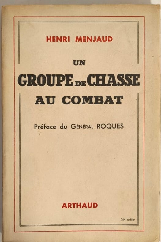 Arthaud 1943 172 pages in8. 1943. broché. 172 pages. Ce livre est un récit historique détaillant les opérations du Groupe de Chasse 1/5 pendant la campagne de France de 1939-1940. L'auteur Henri Menjaud cherche à répondre aux interrogations des troupes au sol sur le rôle des aviateurs français durant la défaite en retraçant l'historique et les combats de cette unité aérienne