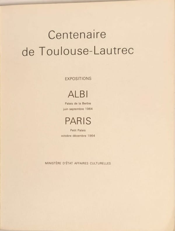 Catalogue des expositions Toulouse-Lautrec tenues à Albi et Paris pour commémorer son centenaire.