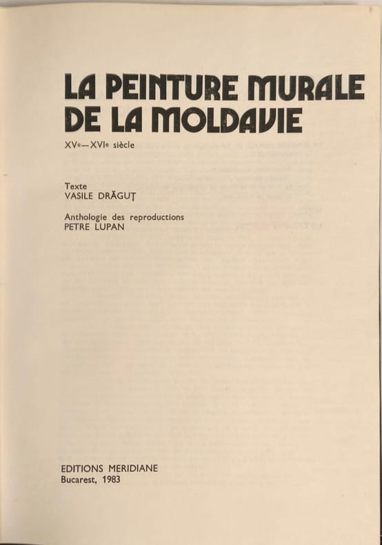 Editions Meridiane 1983 250 pages IN4. 1983. Reliure Editeur avec jaquette. 250 pages. Cet ouvrage de Vasile Drăguț publié en 1983 par les éditions Meridiane est une étude consacrée aux peintures murales extérieures et intérieures des églises de Moldavie datant des XVe et XVIe siècles. Il met en lumière leur qualité technique exceptionnelle qui leur a permis de résister aux intempéries pendant plus de quatre siècles et les présente comme un témoignage majeur du patrimoine artistique et culturel de la région