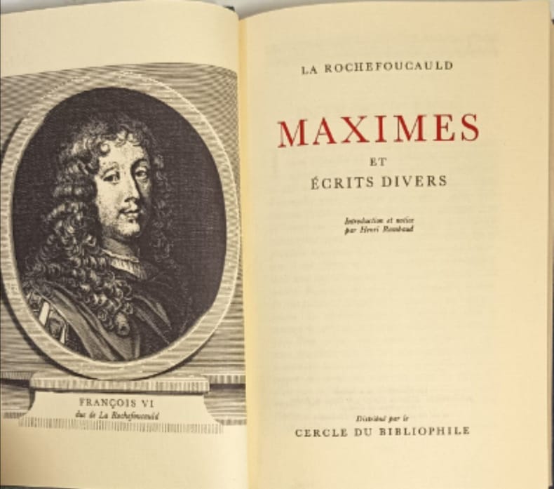 Cercle du Bibliophile 228 pages in8. Sans date. reliure editeur dos ànerfs. 228 pages. Recueil d'aphorismes et de réflexions morales de François de La Rochefoucauld écrivain et moraliste du XVIIe siècle offrant une analyse lucide et démystificatrice des comportements humains de la société et des émotions. L'ouvrage souvent considéré comme son œuvre majeure rassemble plus de 600 maximes ainsi que des textes divers comme les Réflexions morales et posthumes