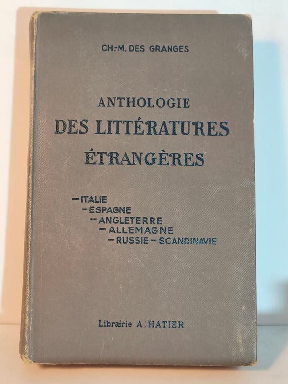 Relié bon état . Contenu propre . 1938. 668 pages . ANTHOLOGIE DES LITTERATURES ETRANGERES (ITALIE, ESPAGNE, ANGLETERRE, ALLEMAGNE, RUSSIE, SCANDINAVIE). (Livre) ~ DES GRANGES CH.-M.