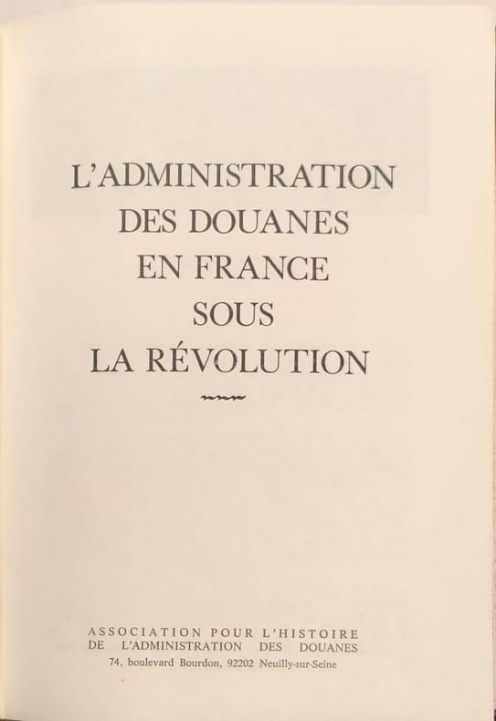 ASSOCIATION POUR L'HISTOIRE DE L'ADMINISTRATION DES DOUANES 1978 310 pages in8. 1978. reliure editeur demi basne dos à nerfs. 310 pages. Ouvrage historique de Jean Clinquart analysant l'administration des douanes en France pendant la période de la Révolution. L'étude examine l'impact des événements politiques sur cette administration et s'inscrit dans une série plus large couvrant l'histoire des douanes du XVIIIe siècle au XXe siècle