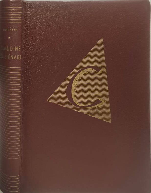 Paris, Ollendorff & Mercure de France, 1900-1903. Quatre volumes in-12. Claudine à l'école. 1900 (couv. illustrée conservée) / Claudine à Paris. 1901. (Couv. conservée ill. en couleurs par Rassenfosse) / Claudine en ménage. 1902. (Mercure de France éditeur) / Claudine s'en va. 1903. ( Couv. conservée ill. en couleurs par Pasan). Maroquin rouge janséniste, dos à nerfs, auteur et titre en lettres dorées, étuis à rebords, doublure int. ornée de filets dorés et entrelacs, têtes dorées étuis bordés. Reliure de Marcel Martin.
