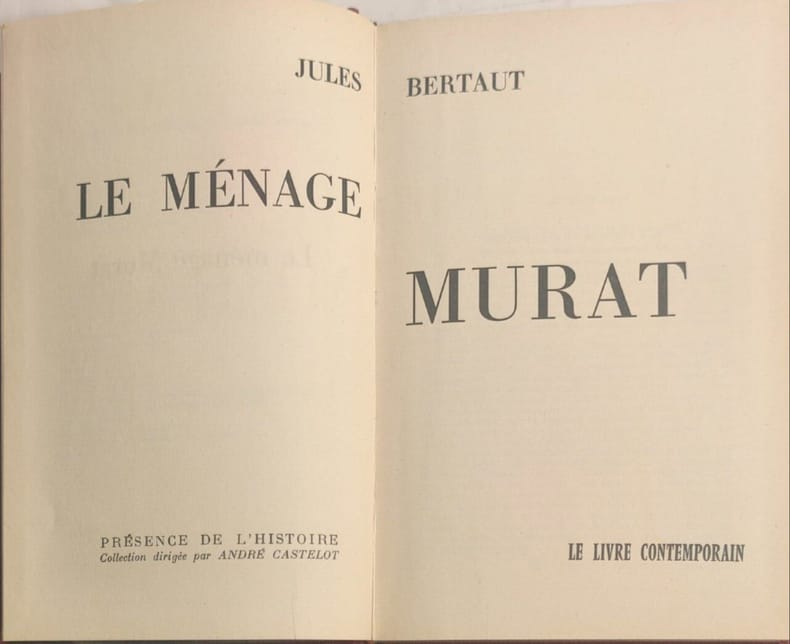 Le Livre Contemporain 1958 248 pages in8. 1958. reliure editeur pleine toile. 248 pages. Jules Bertaut raconte l'ascension et les ambitions du couple Murat Joachim et Caroline dans leur quête du royaume de Naples sous le Premier Empire. L'ouvrage décrit leurs dissensions conjugales leur trahison envers Napoléon lorsque l'Empire s'effondre et la tentative d'aventure de Murat après le retour de l'île d'Elbe. Ce récit historique présenté comme un roman passionnant s'appuie sur des témoignages et documents d'époque