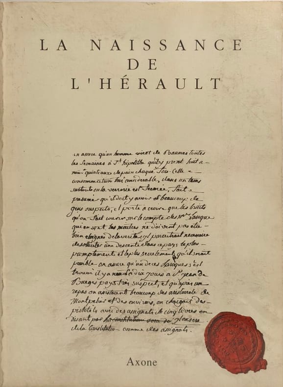 Sans lieu Axone 1989 in 8 (24x18) 1 volume broché, couverture illustrée à rabats, 232 pages, avec de nombreuses illustrations, dont reproductions de documents anciens et cartes. La création du département; Quel chef-lieu pour l'Hérault ?; Le découpage en districts; Le découpage en cantons; Les municipalités: survivre; index. Bel exemplaire