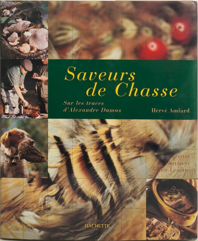 Paris, éd. Hachette, septembre 2000, gd. in-4, cartonnage toilé vert éd., jaquette photos coul. éd., 184 pp., papier glacé, très nb. photos en coul., très nb. reproductions de documents anciens en noir, préface de Gaston Lenôtre, "conseils pratiques", table des matières, Balades dans les plaines et les sous-bois, complicité avec les chiens, arrivée soudaine du gibier, fraternité des repas de chasse... Les photographies d'Hervé Amiard, artiste et lui-même chasseur, nous entraînent dans un univers d'odeurs, de couleurs et de lumière subtil et apaisant. Ces moments d'approche privilégiée de la nature, ces instants d'équilibre et de liberté sont ici saisis dans toute leur essence. Au fil de ces tableaux choisis et sur les traces d'Alexandre Dumas, Gaston Lenôtre, également chasseur et bon vivant, transmet par sa fille Sylvie et son petit-fils Serge Gille-Naves, restaurateur, sa passion du gibier et des volailles festives. Tous les trois aiment ces journées dans la nature où les plaisirs de la table et de l'amitié ont autant d'importance que l'action de chasse et le respect du gibier. Ils proposent 50 recettes originales et savoureuses : Canard sauvage au miel et thym, Râble de lièvre à la moutarde et au cidre, Noix ou filet mignon de chevreuil, sauce orange et gingembre, Daube de sanglier aux aromates frais... autant d'invitations aux plaisirs éternels d'une cuisine conviviale et authentique. Superbes photographies. Très bon état