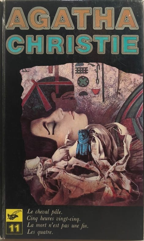 Librairie des Champs-Elysees 1973 623 pages in8. 1973. Reliure editeur cartonnée. 623 pages. Ce tome 11 des œuvres complètes d'Agatha Christie est un recueil qui rassemble quatre œuvres policières : 'Le Cheval pâle' 'Cinq heures vingt-cinq' 'La mort n'est pas une fin' et 'Les Quatre'. 'Le Cheval pâle' suit l'enquête de Mark Easterbrook après la mort suspecte de Thomisa Tuckerton et l'assassinat du père Gorman qui détenait une liste de noms de personnes mortes de façon 'naturelle'. 'Cinq heures vingt-cinq' (originalement 'The Sittaford Mystery') débute par une séance de table tournante annonçant le meurtre du capitaine Trevelyan