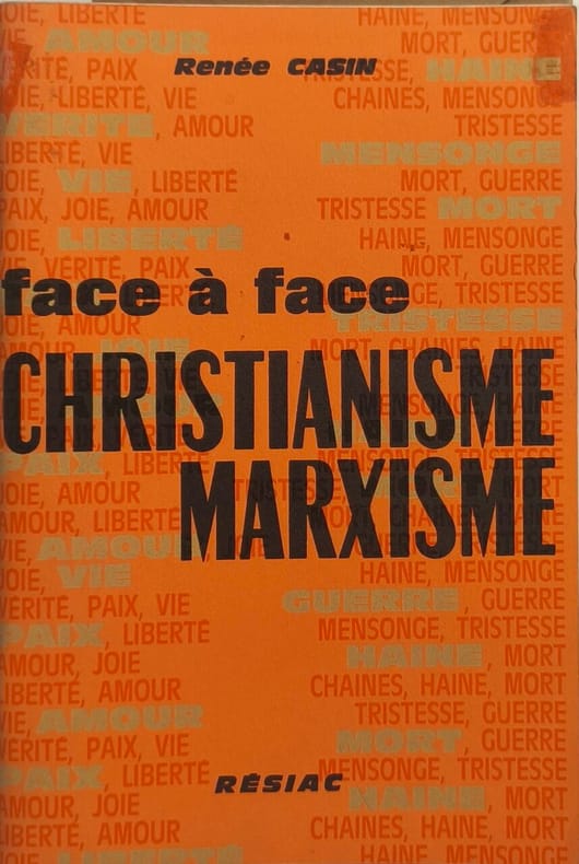 Ecrit dans les années 70 alors que certains Chrétiens prône le rapprochement (sociale) avec les communistes, ce petit livre a pour but de démontrer, en comparant les deux doctrines avec des textes 'officielsˮ (Marxistes en rouge et Catholiques en blanc), les pensées radicalement opposées de l'un et de l'autre. ˮUn Chrétien ne pourra jamais être marxiste. Ceux qui prétendent le contraire sont des insensés. La preuve, la voici, avec d'une part, la pensée de l'Eglise et, d'autre part,les affirmations diamétralement opposées du marxisme sur les mêmes sujetsˮ (Introduction)
