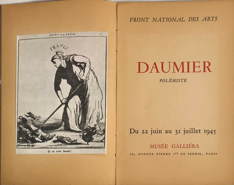 Musée Galliéra 1945 45 pages in8. 1945. broché. 45 pages. Ce catalogue d'exposition publié par le Front National des Arts en 1945 documente l'exposition "Daumier polémiste" qui s'est tenue au Musée Galliéra. Il présente l'œuvre du caricaturiste et lithographe Honoré Daumier dont le travail est emblématique des tensions politiques et sociales du XIXe siècle alternant entre satire politique et satire sociale en fonction des régimes et des lois sur la presse