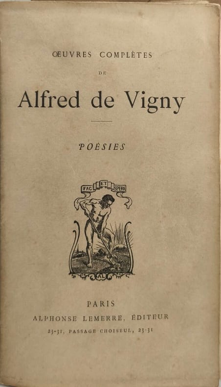 Premier tome de l'édition Lemerre, en 8 volumes, consacrée aux oeuvres complètes d'Alfred de Vigny.