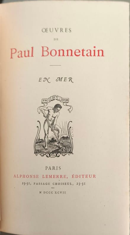 Bel ouvrage ornée de reproductions photographiques et de dessins, la plupart dans le texte, quelques-uns à pleine page. « La mer - Les peuples triomphants. Les transformations de la marine. La guerre et le commerce. La marine française et ses grands chefs. Les leçons de la guerre navale. Les grandes marines modernes. Ports et navires. Les grandes pêches. - Le sauvetage. Le rôle de la mer. L'avenir maritime de la France. » Couverture à décors polychrome ( petite tache au dos), vol. in-4, 280x190, bel état intérieur, gravures, leg. usures d'usages, 504pp, Paris, Flammarion, 1912. Édition Originale.