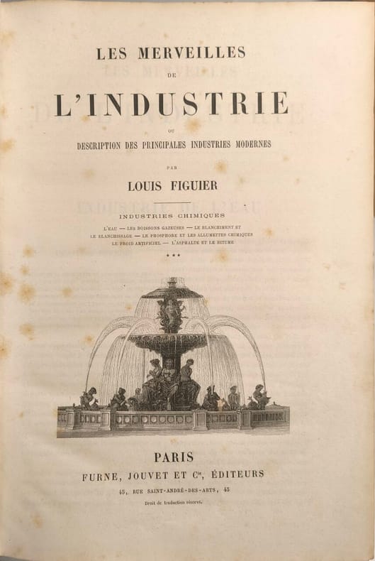 Furne Jouvet et Cie Éditeurs 684 pages IN4. Sans date. reliure éditeur demi chagrin dos à nerfs. 684 pages. Ouvrage encyclopédique de Louis Figuier dliécrivant les principales industries modernes de son époque avec un focus sur les industries chimiques comme la fabrication du verre de la porcelaine du savon du sucre du papier et des produits chimiques industriels. L'œuvre est structurée en plusieurs tomes richement illustrés