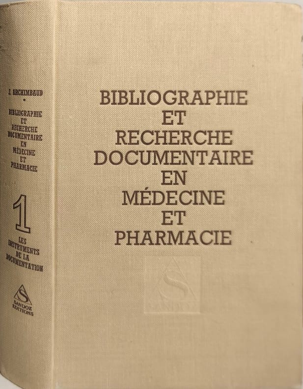 Sandoz Editions 1970 494 pages in4. 1970. pleine toile éditeur. 494 pages. Ce manuel en deux volumes (1970-1972) est un guide complet de bibliographie et de recherche documentaire spécifiquement conçu pour les domaines de la médecine et de la pharmacie. L'auteur ancien conservateur de la bibliothèque de médecine et pharmacie de l'Université de Clermont-Ferrand y présente les instruments de la documentation et l'organisation du travail documentaire couvrant les bibliographies spécialisées les textes fondamentaux et la littérature grise