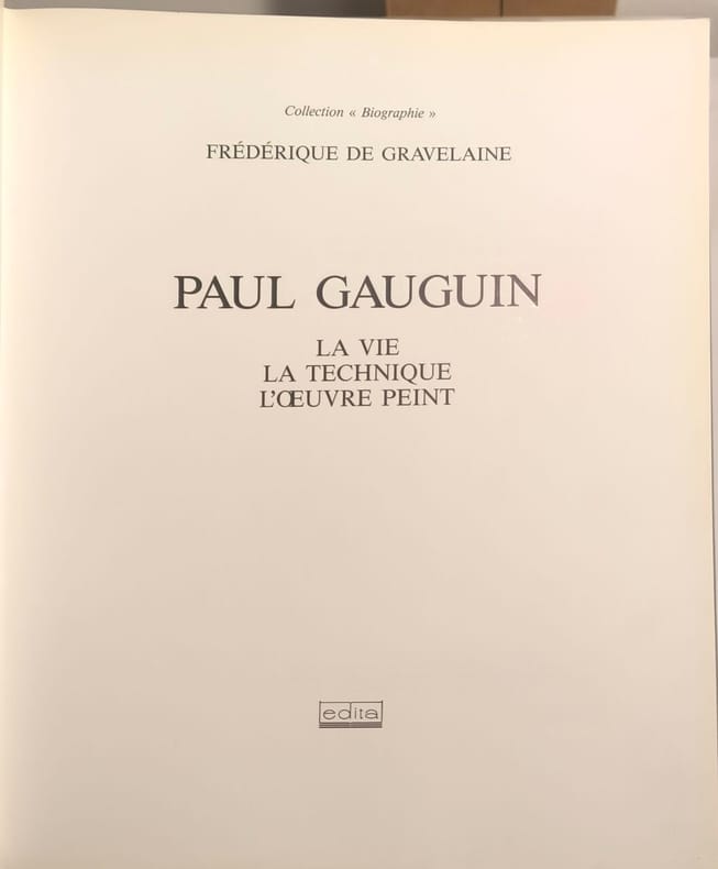 Edita 1988 159 pages in4. 1988. cartonnage editeur avec jaquette. 159 pages. Cette monographie de Frédérique de Gravelaine explore la vie et l'œuvre de Paul Gauguin en analysant sa technique picturale et son évolution artistique de l'impressionnisme au symbolisme en passant par son rôle dans l'école de Pont-Aven et son départ pour Tahiti