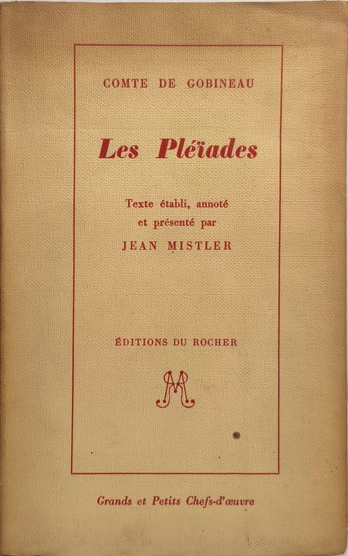 Éditions du Rocher 1957 384 pages in8. 1957. Broché couverture rempliée. 384 pages. Publié en 1874 'Les Pléiades' est un roman du comte de Gobineau qui exprime à travers les discussions et aventures de trois voyageurs bien nés une obsession pour la décadence de l'humanité et le mépris face à la montée de la société démocratique. L'œuvre met en scène des êtres hors normes les 'fils de roi' comme champions d'une cause perdue au sein d'une médiocrité générale et est parfois rapprochée de la manière de Stendhal