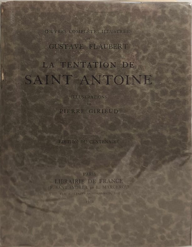 Librairie de France 1922 398 pages in8. 1922. broché. 398 pages. La Tentation de saint Antoine est un récit en prose de Gustave Flaubert publié en 1874 inspiré de la vie du saint éponyme. L'œuvre relate les tentations auxquelles saint Antoine seul et immobile dans le désert doit faire face à travers une évocation baroque et fiévreuse des panthéons des divinités et des obsessions
