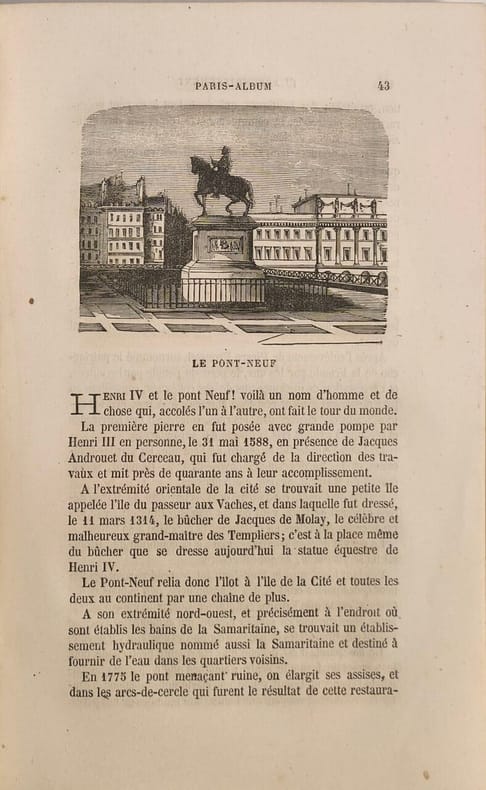 Paris Administration et bu 1865 In-8, broché, couverture imprimée.Une description complète de tous les monuments, anciens ou nouveaux, de la capitale. Cachet de colportage sur la page de titre.