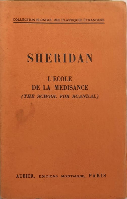 Aubier Éditions Montaigne Paris 1949 286 pages in8. 1949. broché. 286 pages. Comédie de l'écrivain irlandais Richard Brinsley Sheridan publiée en 1777 qui dépeint la haute société londonienne du XVIIIe siècle à travers les intrigues et les commérages. L'intrigue tourne notamment autour des frères orphelins Charles et Joseph Surface sous la tutelle de Sir Peter Teazle et offre un tableau pittoresque d'un petit monde cancanier et intrigant
