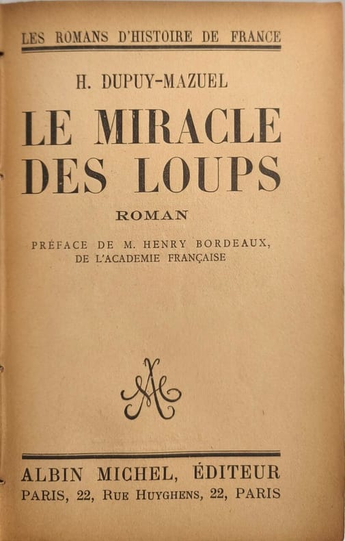 Albin Michel 1924 233 pages in12. 1924. broché. 233 pages. Roman historique se déroulant en 1461 qui met en scène la rivalité entre Louis XI et Charles le Téméraire. L'intrigue suit notamment Robert Cottereau porte-bannière du Téméraire et implique l'enlèvement de la comtesse Jeanne de Beauvais accusée de sorcellerie après avoir été vue protégée par une meute de loups
