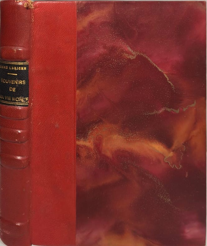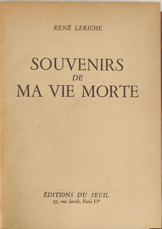 Éditions du Seuil 1956 252 pages in8. 1956. reliure éditeur demi basane dos à nerfs. 252 pages. Mémoires posthumes du chirurgien et physiologiste français René Leriche offrant le témoignage d'un homme curieux et appliqué à comprendre la globalité de l'être. L'ouvrage évoque une époque bénie de la chirurgie où l'application de la méthode anatomo-clinique a permis de décrire la majorité de la pathologie et mentionne des figures contemporaines comme Henri Mondor et Alexis Carrel
