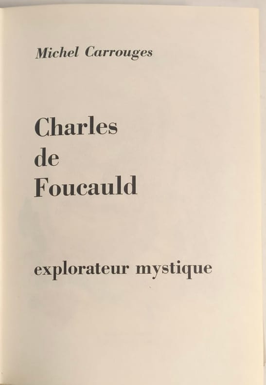 Société nouvelle des éditions 1954 381 pages in8. 1954. Reliure éditeur pleine toile sous rodhoid. 381 pages. Cette biographie de Michel Carrouges retrace la vie de Charles de Foucauld en mettant l'accent sur son itinéraire intérieur et spirituel ainsi que sur son rôle d'explorateur et d'ermite au Sahara. L'auteur présente Foucauld comme une figure à la croisée des spiritualités chrétienne et musulmane tout en adoptant un regard nuancé qui évite l'hagiographie excessive