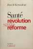 Gallimard 1999 208 pages 20x14x2cm. 1999. Broché. 208 pages. Jean de Kervasdoué propose une analyse critique du système de santé français en identifiant ses contradictions blocages et absurdités. À travers des comparaisons internationales il explore les voies possibles de changement rejette des solutions comme la privatisation et défend la nécessité d'une 'révolution sans réforme' pour laquelle il définit une méthode