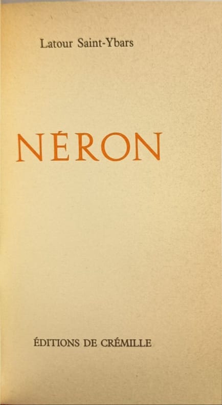 Editions de cremille 1989 252 pages in8. 1989. reliure editeur. 252 pages. Cette biographie de l'empereur Néron écrite par Isidore Latour de Saint-Ybars et publiée initialement en 1867 tente de réhabiliter la figure historique traditionnellement dépeinte comme tyrannique. L'ouvrage examine sa vie et son époque s'inscrivant dans la collection 'Les Personnages maudits' des Éditions de Crémille