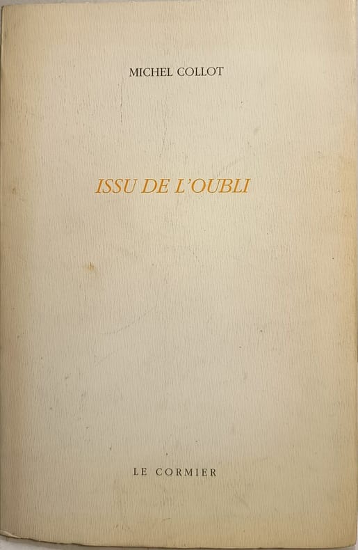 Le Cormier 1997 74 pages in8. 1997. broché. 74 pages. Issu de l'oubli est un recueil poétique de Michel Collot publié en 1997 dans lequel l'auteur poète et universitaire spécialiste de la poésie moderne met en pratique sa conception théorique de la poésie. L'ouvrage rassemble des textes qui avaient nourri ses essais critiques et vise à illustrer par l'écriture poétique elle-même sa réflexion sur le genre