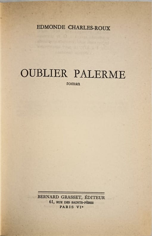 Grasset Sans date. Edmonde Charles-Roux: Oublier Palerme/ Grasset . état correct