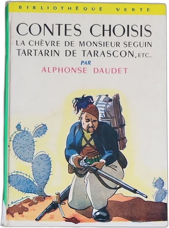 Hachette 1955 251 pages in12. 1955. Cartonnage editeur. 251 pages. Le livre 'Contes choisis' d'Alphonse Daudet publié par Hachette inclut notamment 'La Chèvre de Monsieur Seguin' un conte qui raconte l'histoire de Blanquette une chèvre qui malgré les soins et la protection de son maître est irrésistiblement attirée par la liberté de la montagne où elle finit par être dévorée par un loup après une lutte héroïque. Ce récit extrait des 'Lettres de mon moulin' sert de parabole sur le conflit entre le désir de liberté et la sécurité et est présenté comme un 'petit chef-d'œuvre' parmi d'autres contes et extraits de romans célèbres de Daudet