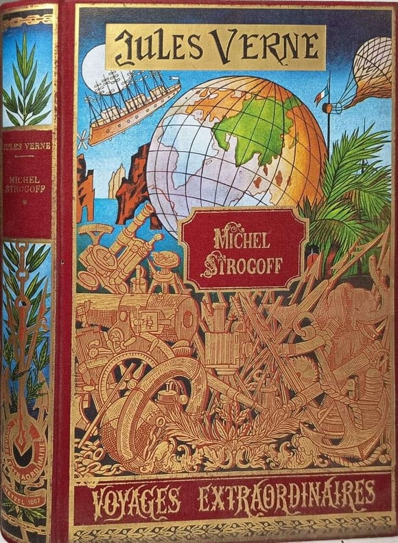 Collection les voyages extraordinaires Complet un volume, superbe reliure, tête dorée, signet, lettrines, culs-de-lampe reliure plein cuir, 21x14, ornées sur le dos de motifs dorés, très bon état, parfait état intérieur,344 pages. Jean de Bonnot, 1977 Michel Strogoff, tome 11 Le voyage extraordinaire par excellence, celui d’un héros positif, engagé dans sa quête, affrontant tous les dangers pour triompher modestement : abondamment repris au cinéma pour les qualités de sa narration, Michel Strogoff est aussi le reflet d’une Russie disparue à jamais, tout comme il est un exemple des qualités de fidélité et d’abnégation qui permettent de transcender la condition humaine.