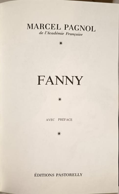 Editions Pastorelly 1973 273 pages in8. 1973. reliure editeur. 273 pages. Deuxième volet de la Trilogie marseillaise 'Fanny' fait suite à 'Marius'. Après le départ de Marius pour la mer Fanny découvre qu'elle est enceinte de lui. Cette grossesse hors mariage menace de plonger sa famille notamment sa mère Honorine dans le déshonneur tandis que César le père de Marius devient de plus en plus coléreux
