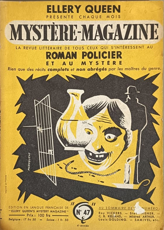 Opta 1951 117 pages in8. 1951. broché. 117 pages. Mystère Magazine est une revue mensuelle française de littérature policière éditée par OPTA de 1948 à 1976. Il s'agit de la version française de l'Ellery Queen's Mystery Magazine américain publiant chaque mois un choix de nouvelles policières d'auteurs renommés du genre