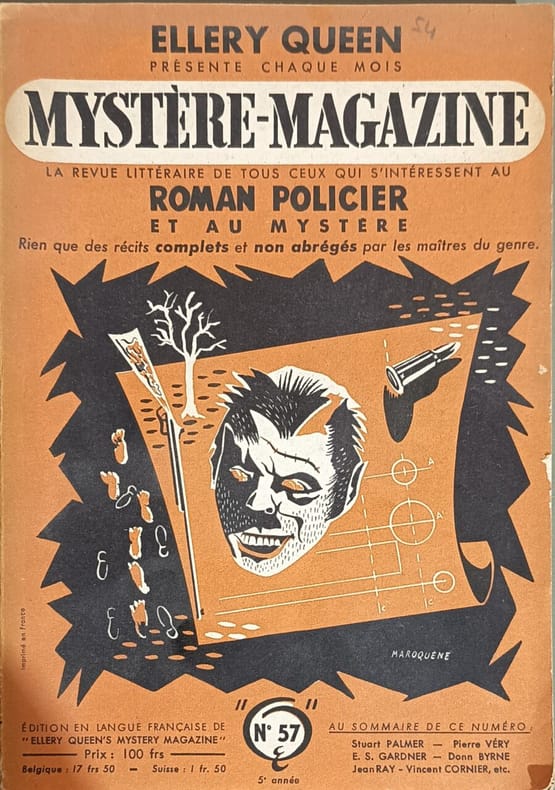 Opta 1952 125 pages in8. 1952. broché. 125 pages. Mystère Magazine est une revue mensuelle française de littérature policière éditée par OPTA de 1948 à 1976. Il s'agit de la version française de l'Ellery Queen's Mystery Magazine américain publiant chaque mois un choix de nouvelles policières d'auteurs renommés du genre