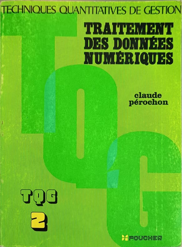Foucher 1971 254 pages in8. 1971. broché. 254 pages. Manuel scolaire de la collection 'Techniques quantitatives de gestion' destiné aux élèves de terminale G2 (filière gestion) publié par les éditions Foucher. Il traite du traitement des données numériques. L'ouvrage propose également des corrigés d'exercices