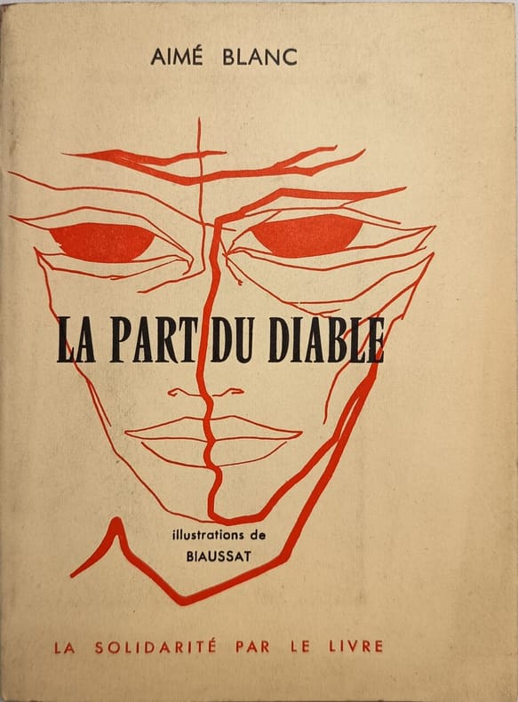 La Solidarité par le Livre 1964 249 pages in8. 1964. broché. 249 pages. La Part du Diable est un recueil de nouvelles fantastique de l'écrivain français Aimé Blanc publié en 1965 par l'éditeur associatif La Solidarité par le Livre. L'ouvrage de 249 pages est illustré par Raymond Biaussat et présente des histoires explorant des thèmes surnaturels et oniriques