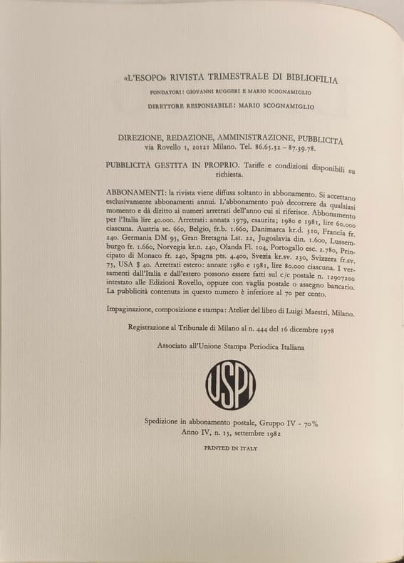 Edizioni Rovello 1982 85 pages IN4. 1982. Broché couverture rempliée sous rodhoid. 85 pages.