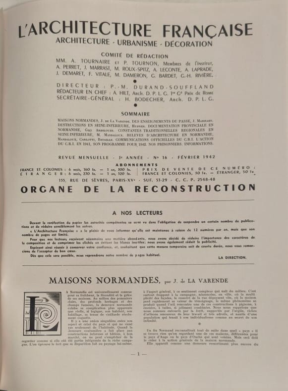 L'architecture française 1942 23 pages IN4. 1942. broché. 23 pages.