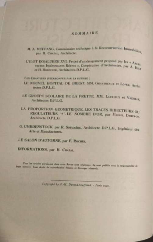 L'architecture française 1942 23 pages IN4. 1942. broché. 23 pages.