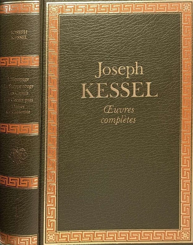 Éditions rombaldi 1974 in8. 1974. reliure editeur. 15 volume(s). Joseph Kessel (1898-1979) est un écrivain-reporter français romancier et grand voyageur auteur de près de quatre-vingts romans. Membre des Forces françaises libres il a recueilli et transformé les témoignages de résistants pour son œuvre tout en préservant l'authenticité des faits. Son premier grand succès est 'L'Équipage' (1923) et parmi ses œuvres majeures figurent 'Le Lion' (1958) 'Les Cavaliers' (1967) et 'L'Armée des ombres' (1969)