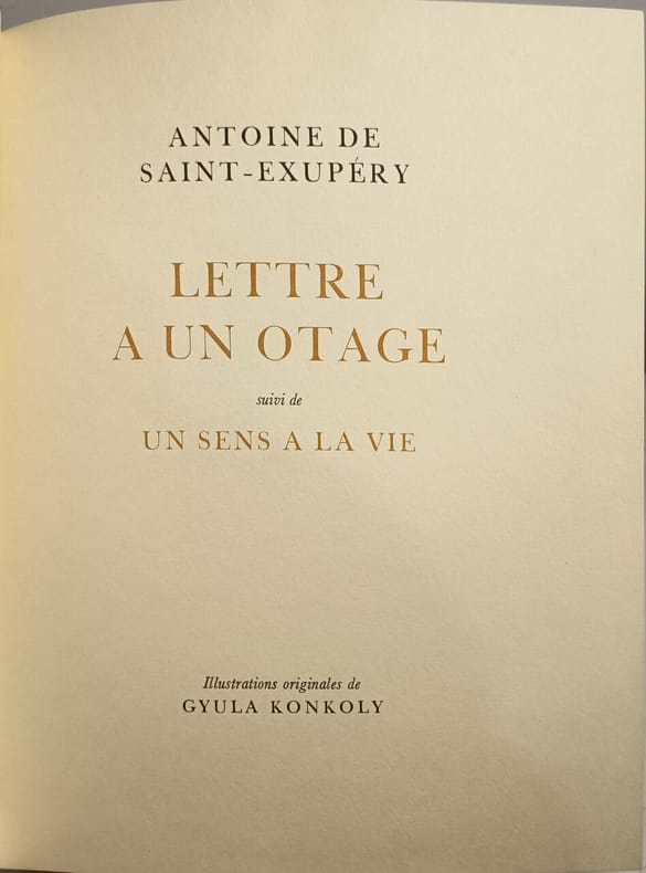 """Le Petit prince"" avec les dessins de l'auteur. ""Pilote de guerre"" et ""Lettre à un otage"" avec les lithographies originales de Georges Feher. Classification Dewey : 840.091-XX ème siècle"