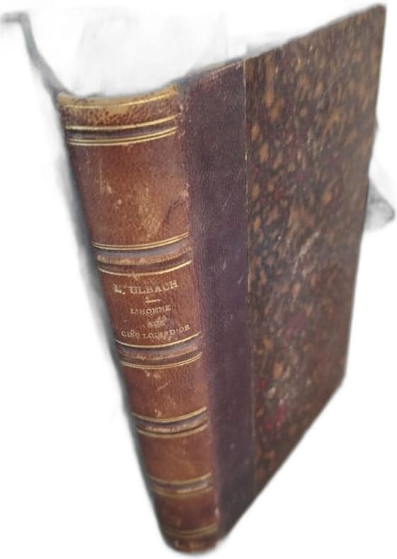 Bourdilliat 1860 317 pages in12. 1860. reliure demi-basane. 317 pages. L'ouvrage 'L'Homme aux cinq louis d'or' de Louis Ulbach est un roman français du XIXe siècle initialement publié en feuilleton dans la presse (notamment 'La Presse' et le 'Journal des débats') entre 1854 et 1864. Tiré d'une nouvelle intitulée 'Argine Picquet' il raconte l'histoire et peint le caractère singulier d'une vieille demoiselle de ce nom en prenant comme cadre la ville de Troyes. L'édition analysée s'inscrit dans une politique de conservation patrimoniale