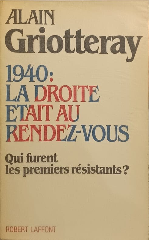 Robert Laffont 1985 260 pages 13 2x1 8x21 2cm. 1985. Broché. 260 pages. L'historien Alain Griotteray analyse le rôle de la droite politique française en 1940 période marquée par la défaite face à l'Allemagne nazie. Il examine ses divisions et ses choix face à la montée du régime de Vichy en s'interrogeant sur l'identité des premiers résistants